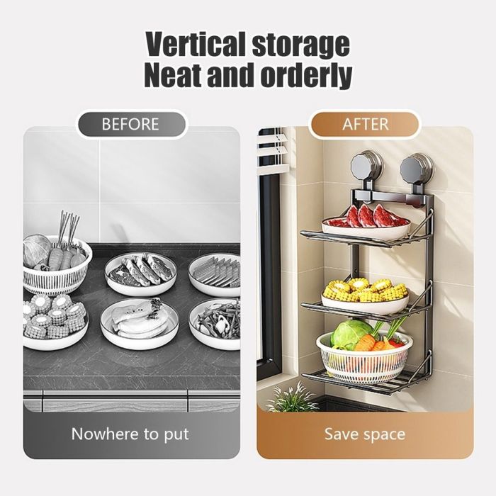 امنح مطبخك أو حمامك تنظيمًا مثاليًا مع المنظم المعدني الثلاثي الأرفف المثبت على الحائط، الحل متعدد الاستخدامات لتخزين الأدوات بشكل مرتب وآمن. يمكن استخدامه كرف لتجفيف الأطباق فوق الحوض أو بجانبه، أو لترتيب التوابل والأدوات في المطبخ، أو لتنظيم مستلزمات الحمام اليومية. تصميمه المعدني المتين والفارغ يسمح بمرور الهواء والماء، مما يجعل التنظيف سهلًا ويحافظ على الأدوات جافة ونظيفة