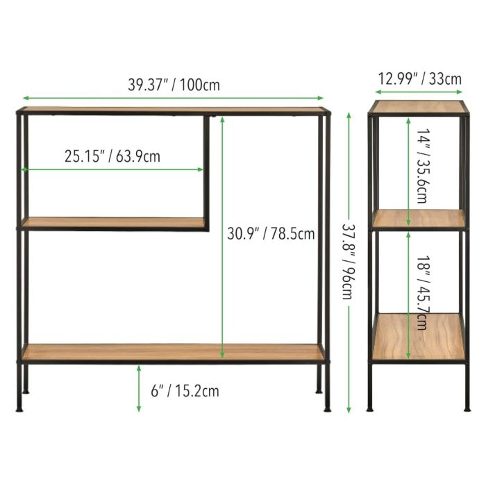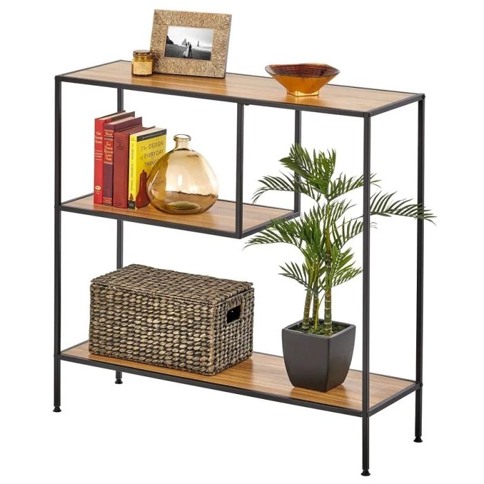 أضف لمسة من الأناقة العصرية إلى منزلك مع هذه الطاولة الخشبية المزودة بـ 3 أرفف وإطار معدني متين. تصميمها العملي يوفر لك مساحة مثالية لعرض الكتب والإكسسوارات والديكورات، بينما يمنحك الرف السفلي مساحة إضافية للتخزين والتنظيم. بفضل مزيج الخشب الطبيعي مع المعدن الأسود الأنيق، تتناغم الطاولة بسهولة مع مختلف أنماط الديكور لتكون إضافة مثالية لغرفة المعيشة أو المدخل أو حتى المكتب المنزلي.