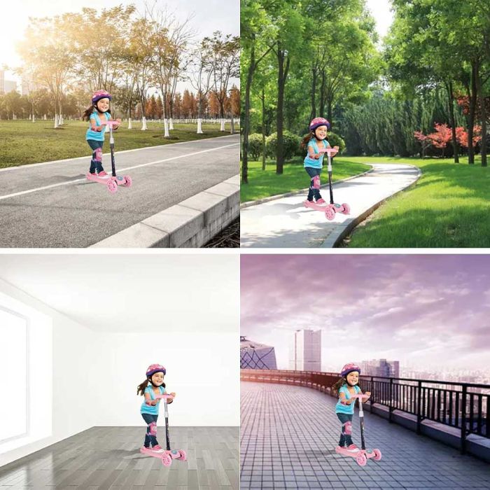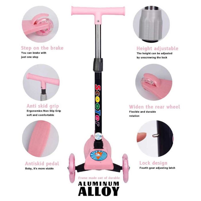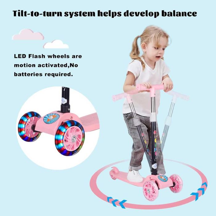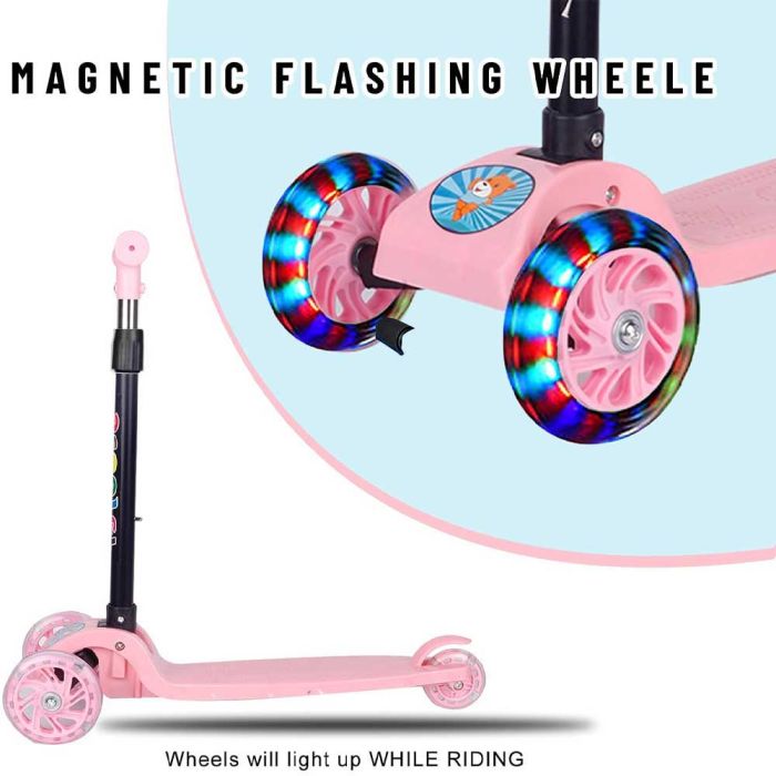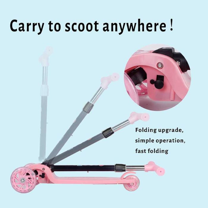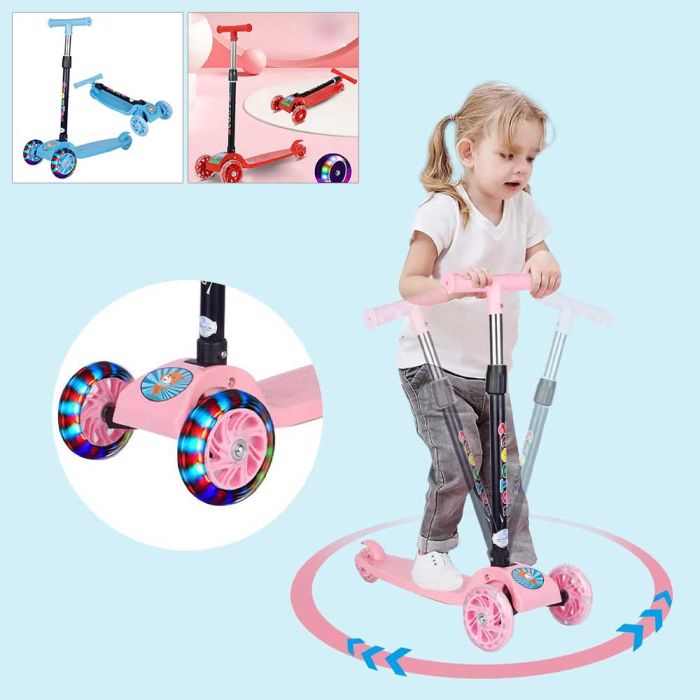 - سكوتر بثلاث عجلات للأطفال قابل للطي مع إضاءة LED