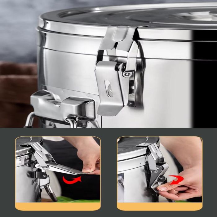 مصنوع من الستانلس ستيل 304 المخصص للأغذية، وهو مثالي لتخزين الطعام والسوائل، مما يضمن أعلى معايير النظافة ومقاومة الصدأ