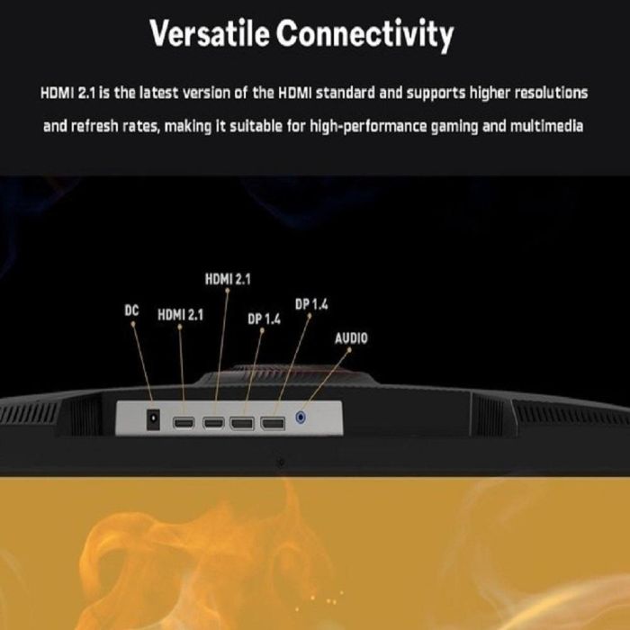 - المنافذ: عدد 2 منفذ HDMI 2.1، عدد 2 منفذ DisplayPort 1.4، عدد 1 منفذ Audio out