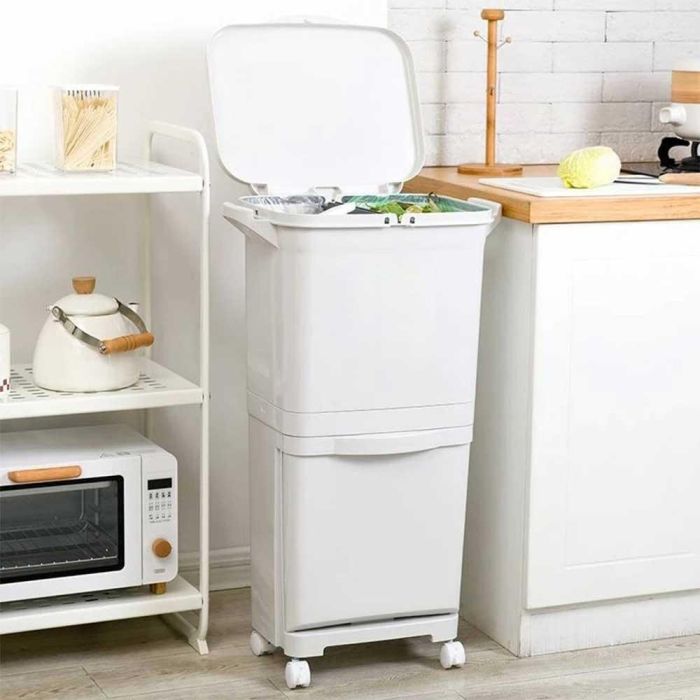 الحل الأمثل لمطبخ عصري ونظيف. نظامها المبتكر المكون من طبقتين يجعل فرز المواد القابلة لإعادة التدوير والنفايات العضوية أمرًا سهلاً، مما يعزز اسلوب حياة صديق للبيئة. استمتع براحة فائقة مع دواسة القدم التي تتيح فتحًا وإغلاقًا سهلاً وصحيًا بدون لمس، والعجلات المدمجة التي تتيح لك نقلها إلى أي مكان، مع فرامل لإبقائها ثابتة بأمان. بسعة كبيرة تبلغ 34 لترًا وتصميم أنيق وبسيط، تمثل المزيج المثالي بين العملية والأناقة لمنزلك.