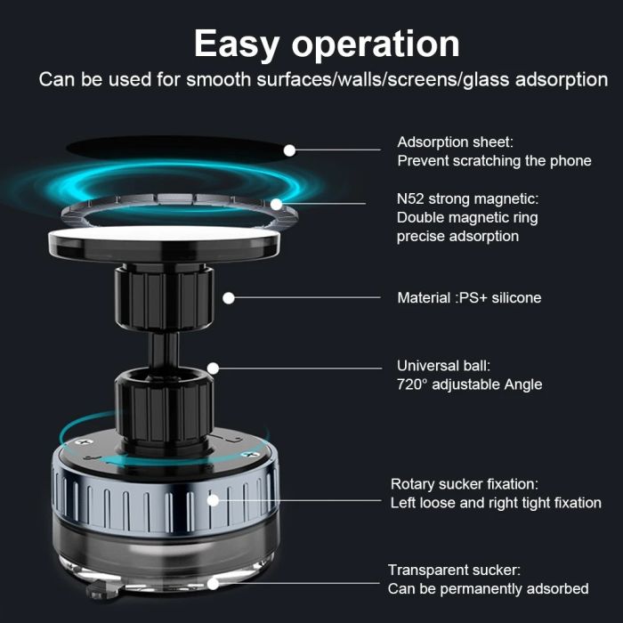 قاعدة تثبيت مغناطيسية للهاتف 360 درجة بتقنية الشفط الهوائي