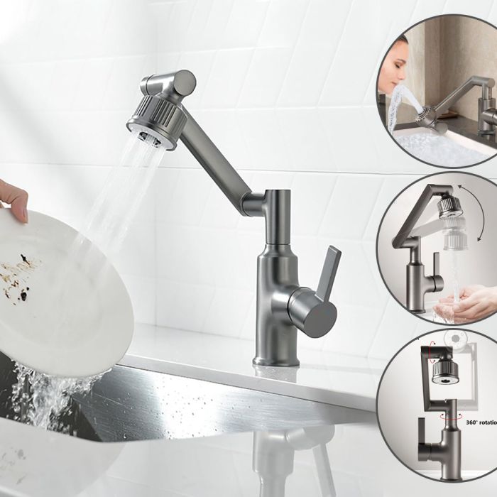 اكتشف الراحة والكفاءة في مطبخك مع هذا الصنبور الدوار متعدد الوظائف. صُمم هذا الصنبور الفريد بأسلوب أنيق ومزايا متعددة، ليقدم تجربة استثنائية في استخدام الماء. كما يتيح الدوران الكامل بزاوية 360 درجة والتحكم بدرجة الحرارة بحركة واحدة من الساخن إلى البارد الراحة والكفاءة لكل استخدام، سواء كنت تحتاج إلى برودة منعشة في الصيف أو دفء مريح في الشتاء. بفضل 6 وظائف متنوعة، يوفر هذا الصنبور تنوعاً في تدفق المياه