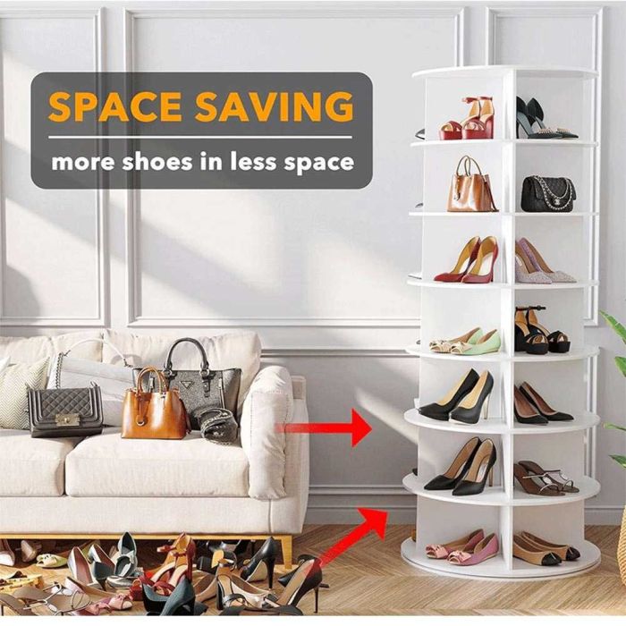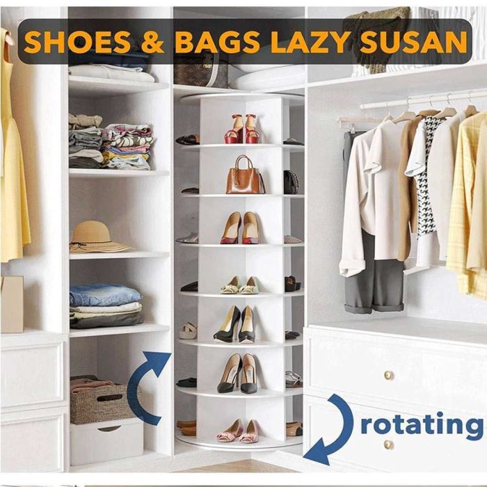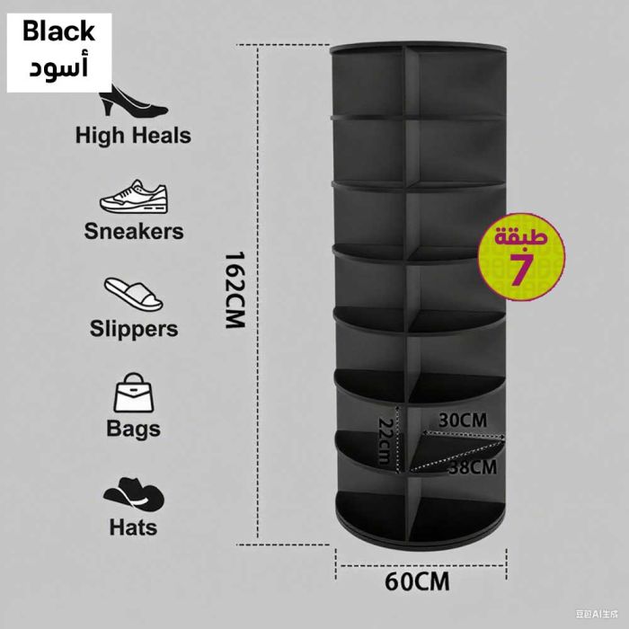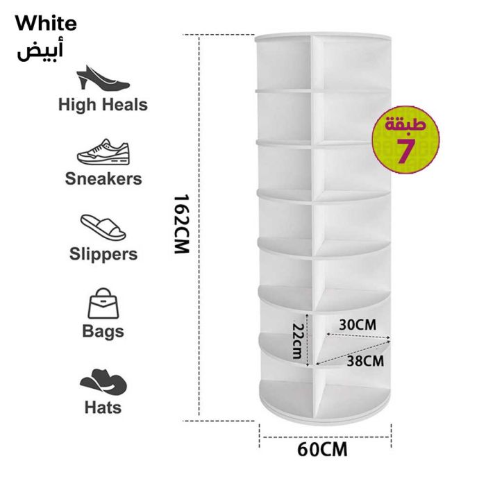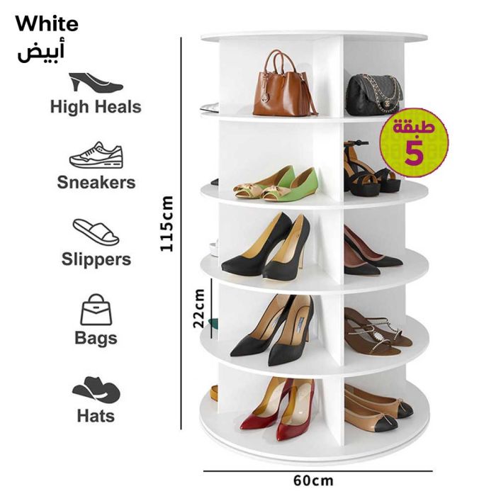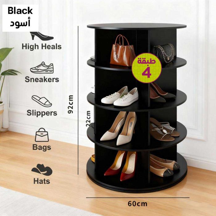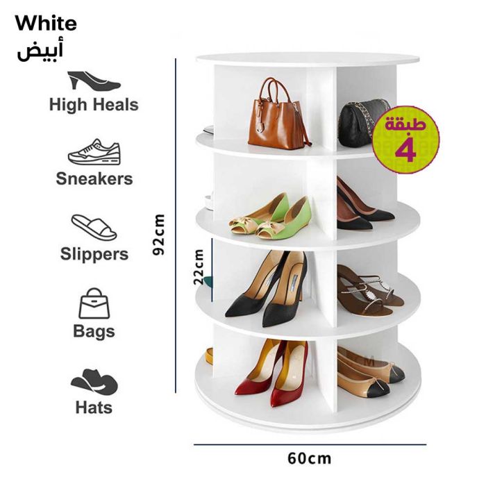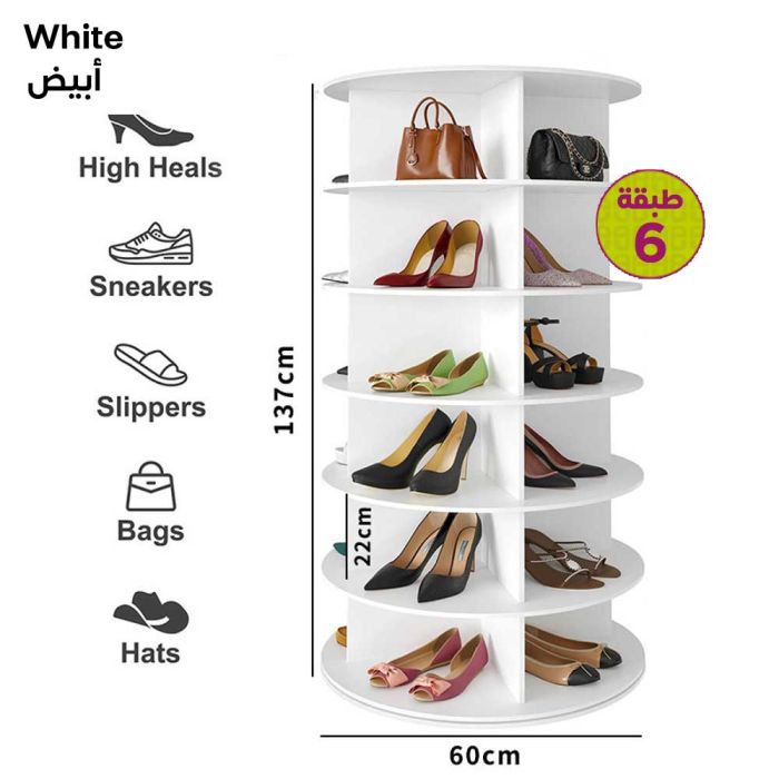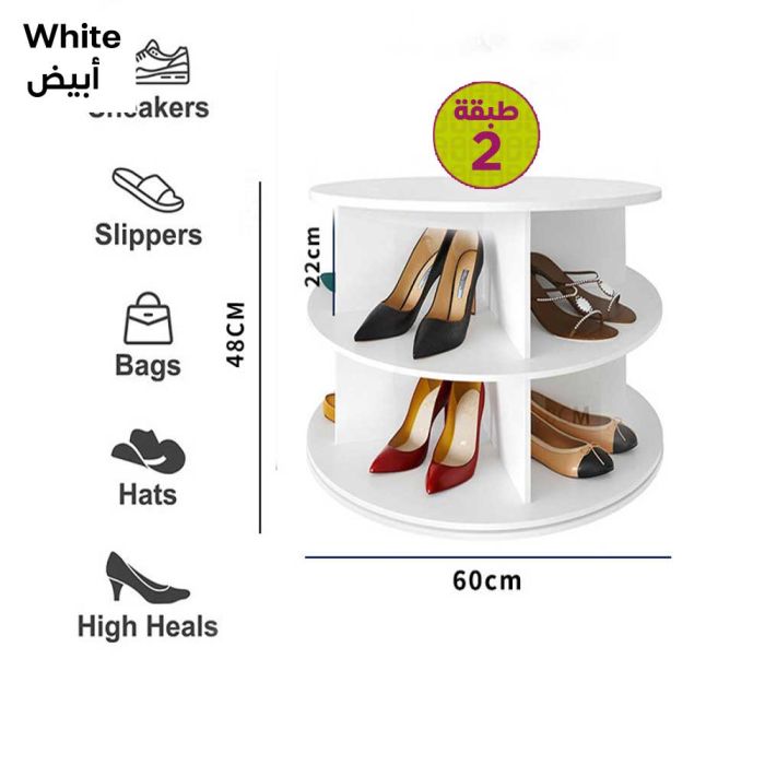 منظم دوار متعدد الاستخدامات 360 درجة مصنوع من مواد قوية ومصمم لتوفير المساحة، يدور بسلاسة لتسهيل الوصول إلى جميع الأغراض من أحذية، حقائب، قبعات وغيرها، مثالي لغرف النوم أو المداخل، يجمع بين الأناقة والعملية لتنظيم أنيق ومريح.