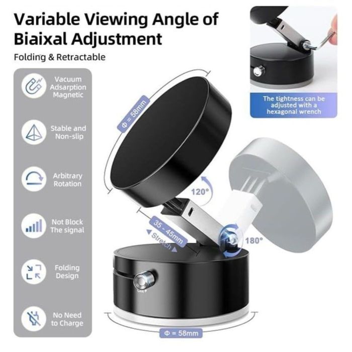 - قاعدة شفط قوية بتفريغ الهواء لتثبيت مستقر على الأسطح الملساء