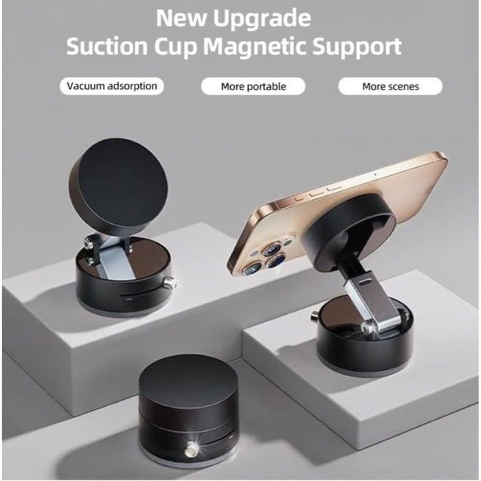 ثبّت هاتفك بأمان مع قاعدة الهاتف المغناطيسية بالشفط 360°. شفط قوي على الزجاج والسطوح الملساء. دوران كامل 360° لتحديد زاوية مشاهدة مثالية. مصنوعة من ABS متينة، متوافقة مع جميع الهواتف iPhone وAndroid. مثالية للملاحة، المكالمات، ومشاهدة الفيديو.