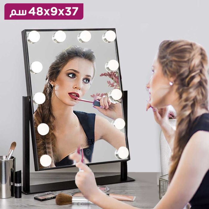 - مرآة مكياج بإضاءة LED قابلة للدوران 360 درجة مع تحكم ذكي باللمس