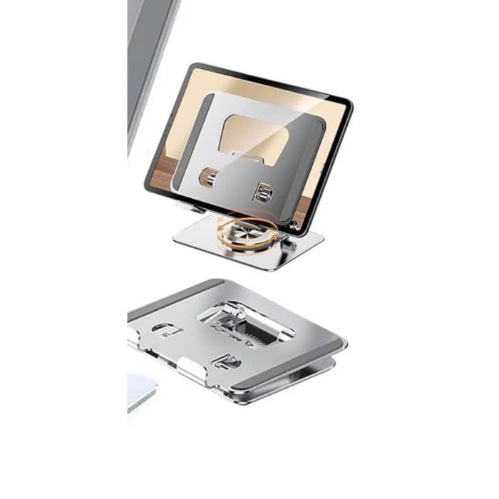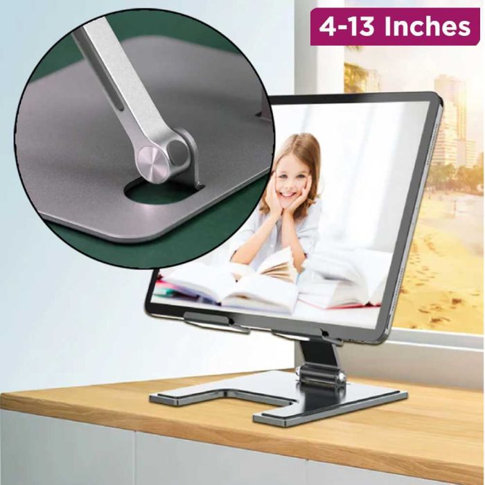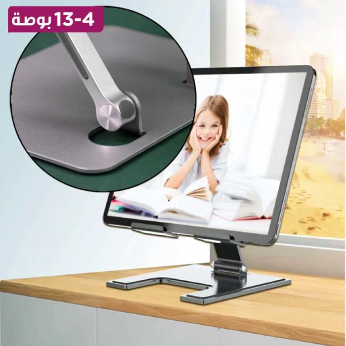 قاعدة معدنية قوية بتصميم أنيق ومرن، تناسب جميع الأجهزة من 4 إلى 13 بوصة. مثالية لمشاهدة الفيديوهات، القراءة أو الاجتماعات، وتمنحك راحة تامة بزاوية عرض قابلة للتعديل. خامة ألومنيوم فاخرة وثابتة لتجربة استخدام آمنة واحترافية.