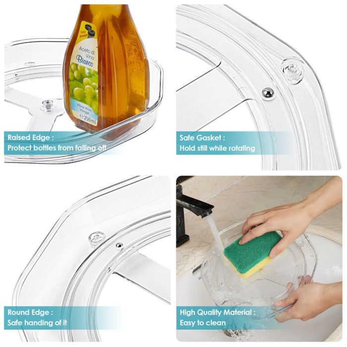 تعد صينية المطبخ الدوارة هذه حلاً مريحًا وموفرًا للمساحة لتنظيم مطبخك. يتيح دورانها بزاوية 360 درجة سهولة الوصول إلى التوابل والبهارات وغيرها من الضروريات. يضمن التصميم القوي الثبات، ويمكن استخدامه في مجموعة متنوعة من المواقف. سواء كنت تشارك زجاجات الطعام والتوابل على طاولة الطعام، أو حتى عرض العناصر الصغيرة كعناصر زخرفية