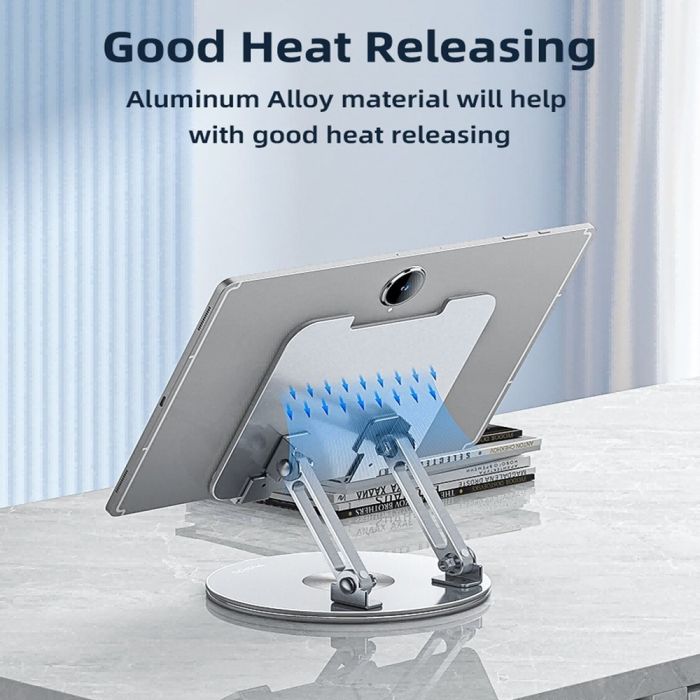 - قاعدة طاولة من سبائك الألومنيوم C293 يدور 360 درجة، تصميم قابل للطي، يُبدّد الحرارة جيدًا