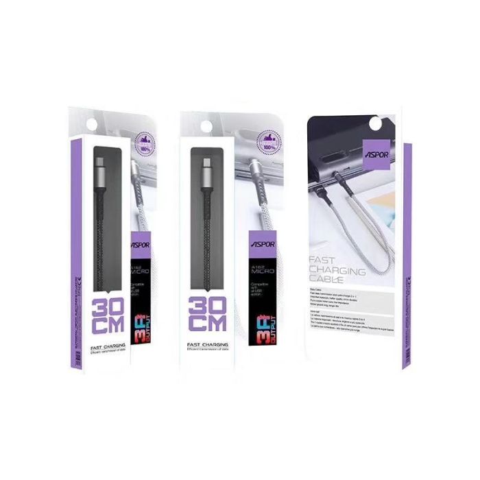 - كيبل شحن سريع Type C بقوة 3 أمبير وطول 30 سم من Aspo