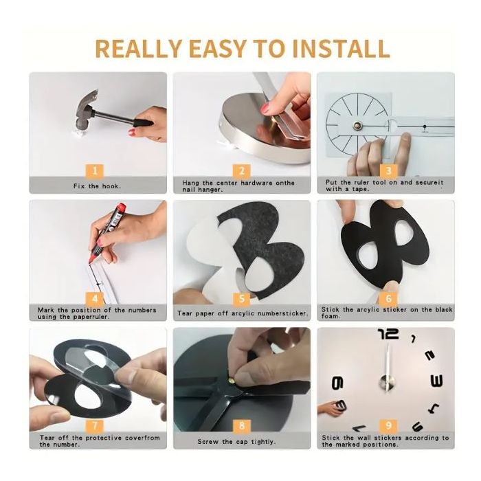 حول مساحتك باستخدام ساعة الحائط DIY بدون إطار ثلاثية الأبعاد! تتيح لك هذه الساعة العصرية القابلة للتخصيص إنشاء تصميم فريد يناسب أسلوبك. سهلة التجميع ومثالية لأي غرفة، فهي تضيف لمسة من الأناقة والوظائف إلى منزلك أو مكتبك. تميز بمظهر لا يتأثر بمرور الزمن اليوم!