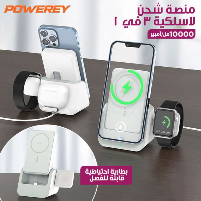 - منصة شحن لاسلكية 3 في 1 من Powerey