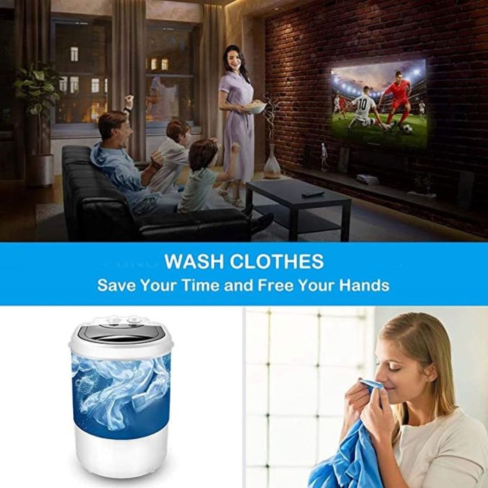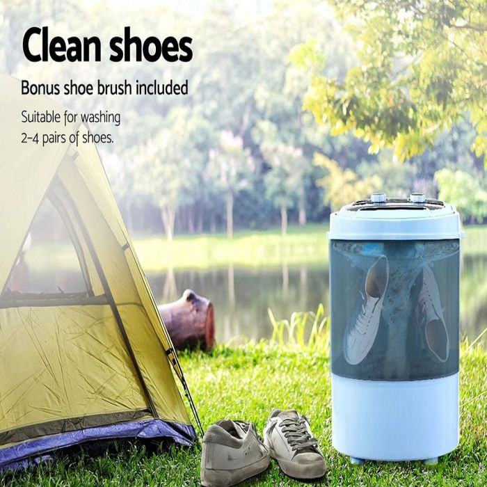 تعمل هذه الغسالة على تعقيم الملابس والأحذية، حيث تقضي على البكتيريا على المستوى المجهري. غسالة محمولة بتصميم مدمج يمكن وضعها بسهولة في أي مكان في منزلك أو حتى استخدامها أثناء التخييم والسفر