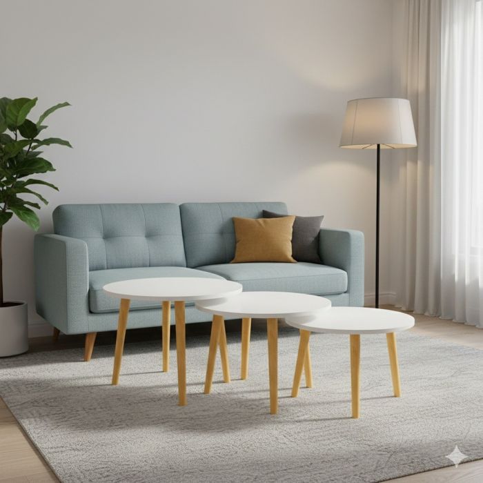 - طقم مكون من ثلاث طاولات متدرجة الأحجام لتوفير مساحة الغرفة