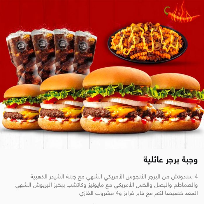 4 سندوتش برجر أنجوس + فاير فرايز من مطعم Police Steak