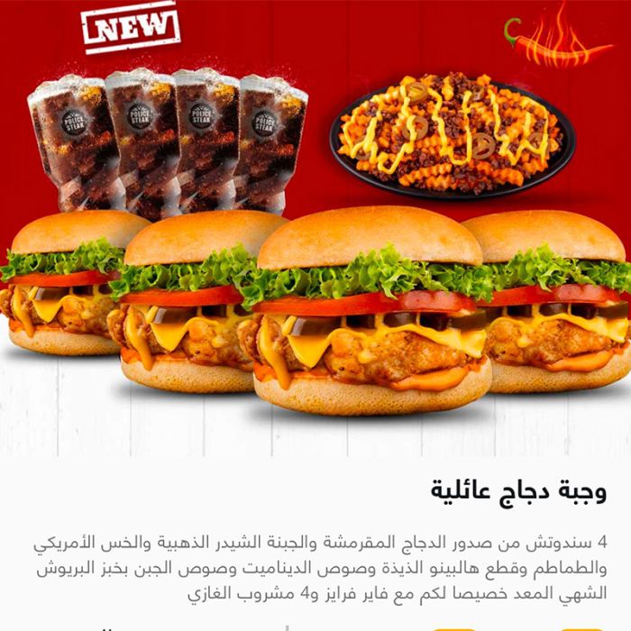 4 سندوتش من صدور الدجاج المقرمشة + فاير فرايز من مطعم Police Steak