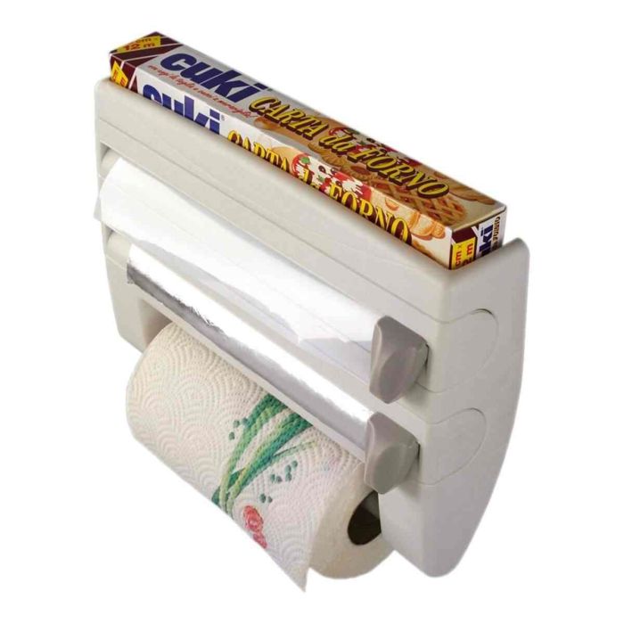 حافظ على المناديل، بلاستيك التغليف وورق الالمنيوم في متناول يدك، يعلق على الجدار، متعدد الاستخدام يمكنك وضع رول من المناديل او ورق القصدير او بلاستيك التغليف 4 في واحد