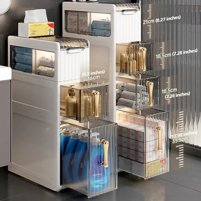 أضف لمسة من الأناقة إلى مساحتك مع هذا المنظم، تصميمه العملي والنحيف يوفر حلاً مثالياً للاستفادة من المساحات الضيقة. يتميز بأربعة أدراج واسعة ومتنوعة تساعدك على ترتيب أدوات التجميل، المستلزمات المكتبية أو أغراض الحمام بسهولة. مصنوع من بلاستيك بولي بروبالين عالي الجودة ومقاوم للصدمات ليضمن المتانة والاستقرار على المدى الطويل، مما يجعله الخيار الأمثل للحفاظ على أغراضك منظمة بشكل أنيق وفي متناول يدك