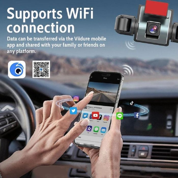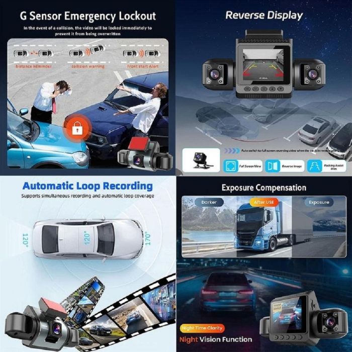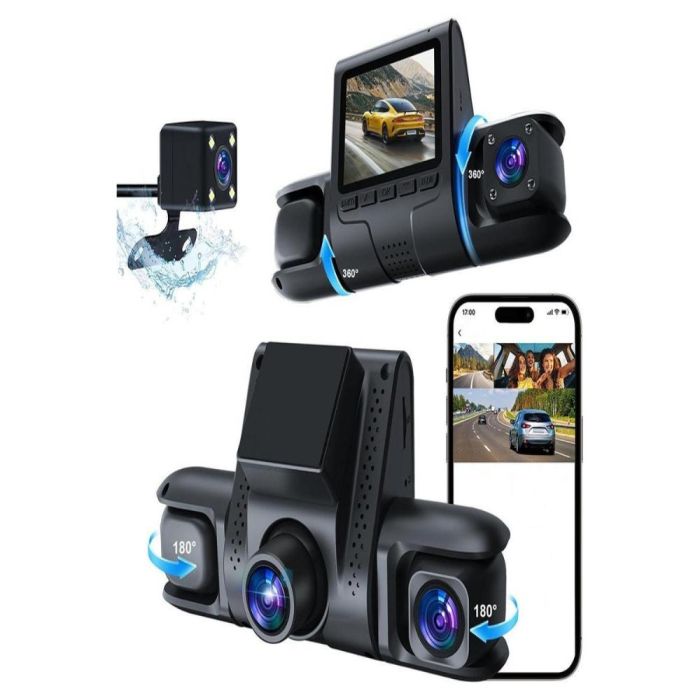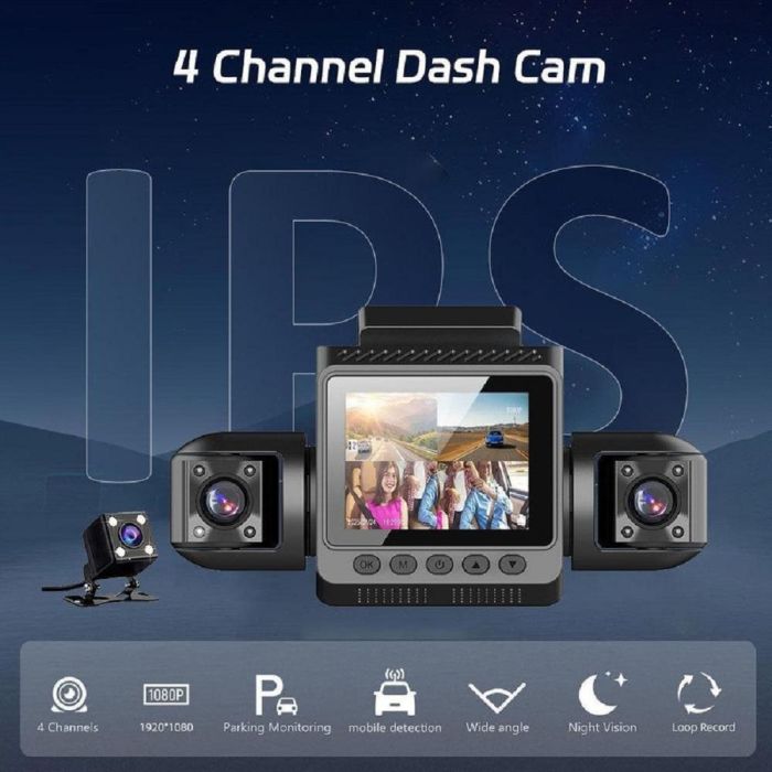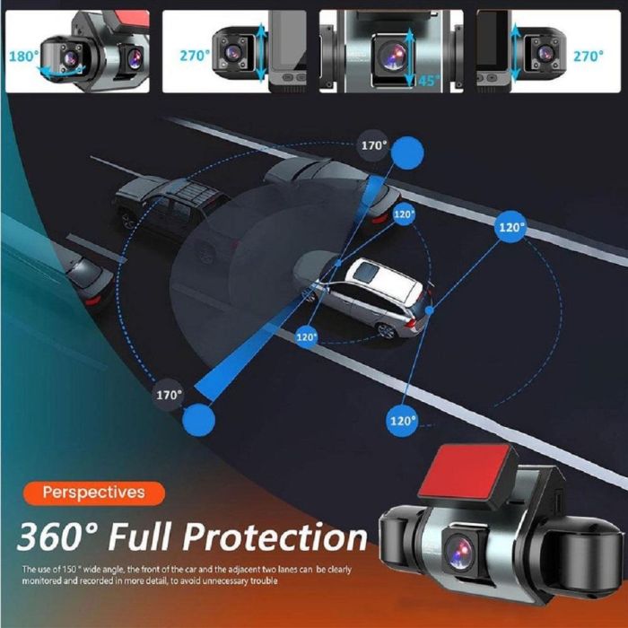 كاميرا سيارة متطورة توفر نظام تسجيل شامل بزاوية 360 درجة لتغطية جميع جوانب السيارة. وهي مزودة بكاميرا أمامية Full HD دقة 1080 بكسل وزاوية واسعة 150 درجة، مع كاميرا خلفية دقة 720 بكسل، و2 كاميرات جانبية دقة 480 بكسل لتغطية كاملة دون أي نقاط عمياء