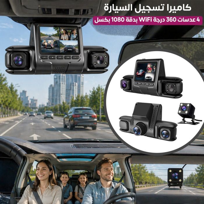 صفقة اليوم هي كاميرا تسجيل السيارة 4 عدسات 360 درجة WiFi بدقة 1080 بكسل