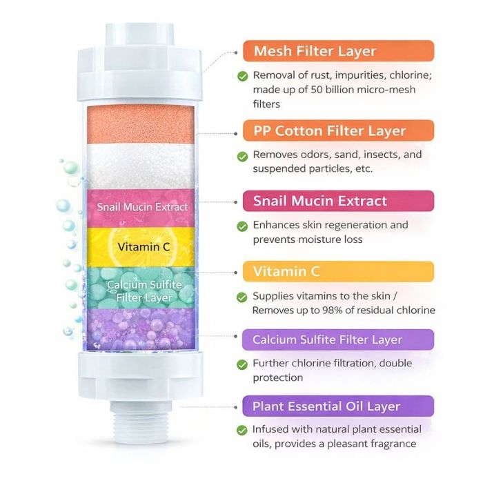 - يضمن ماء أنعم وأنقى للاستحمام اليومي