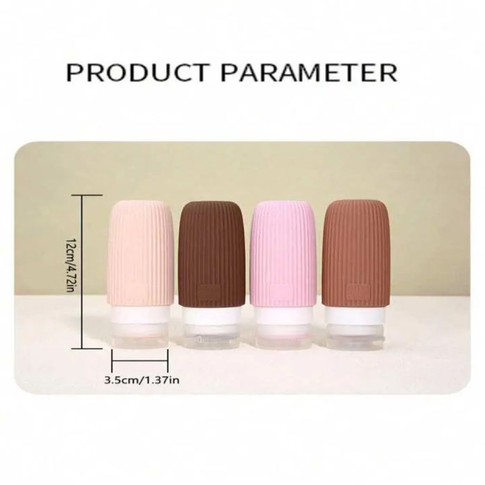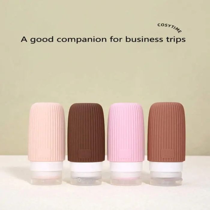اجعل رحلاتك أكثر راحة مع مجموعة زجاجات السيليكون للسفر المكونة من 4 قطع. مصممة من خامات آمنة ومرنة، ومزودة بأغطية مانعة للتسرب، مثالية لتعبئة الشامبو أو الغسول أو المستحضرات بكل أمان. سهلة الاستخدام والتنظيف، بحجم مناسب لحقيبة اليد وتوافق كامل مع متطلبات السفر الجوي. مثالية لكل من يعشق الترتيب والنظافة أثناء التنقل.
