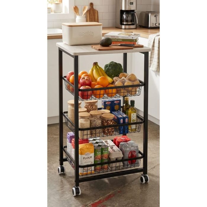- عربة تخزين مطبخ 4 طبقات بعجلات 78 × 38 × 28 سم