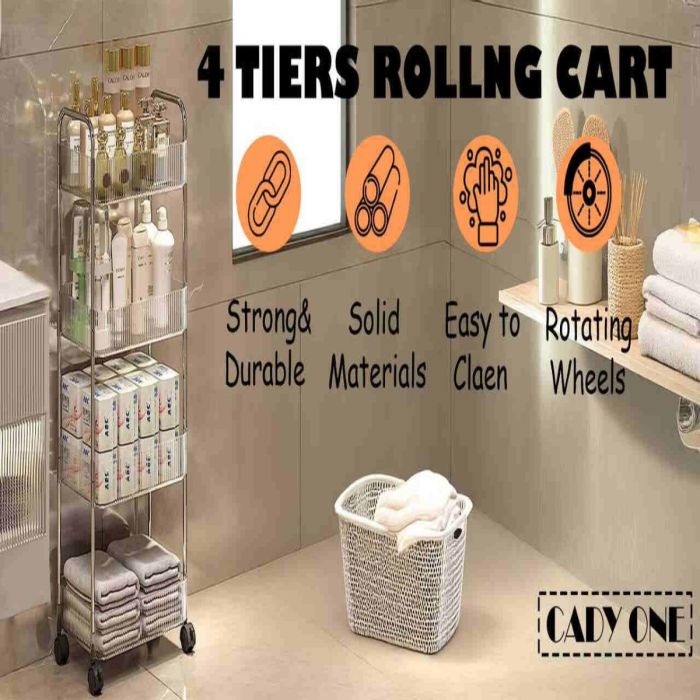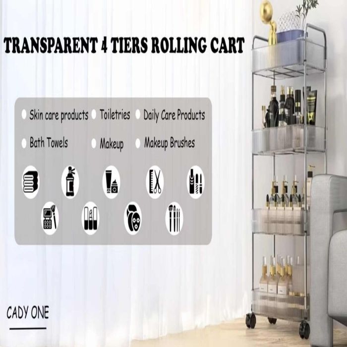 احفظي مساحتك مرتبة وأنيقة مع هذه العربة العملية المكونة من أربع طبقات من الأكريليك الشفاف. مصنوعة من الأكريليك عالي الجودة لتجمع بين التصميم العصري والمتانة العملية للاستخدام اليومي. أربع عجلات متحركة بسلاسة تسهّل نقلها من الحمام إلى المطبخ أو المكتب بسهولة. توفر كل طبقة مساحة واسعة للتخزين بينما يتيح التصميم الشفاف رؤية المحتويات بوضوح. حجمها المدمج مع سعتها المناسبة يجعلها مثالية لتنظيم الضروريات مع إضافة لمسة أناقة لأي زاوية.