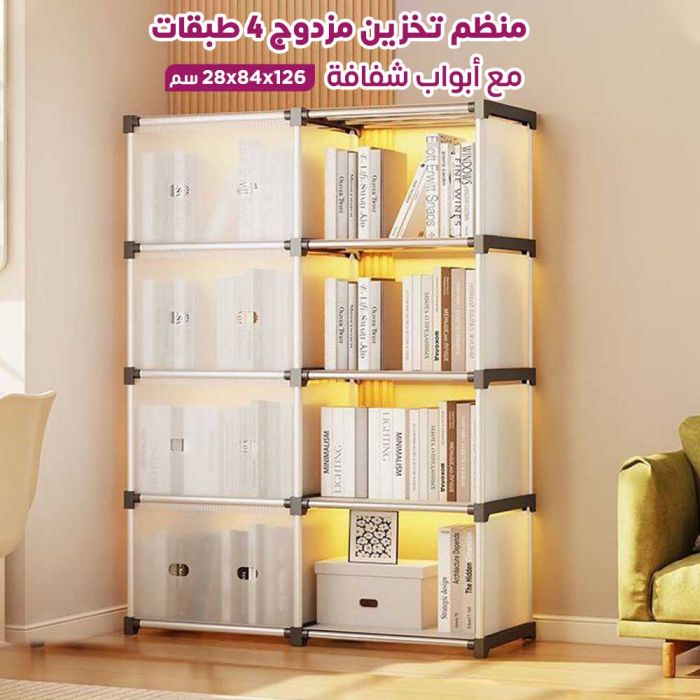 - منظم تخزين مزدوج 4 طبقات مع أبواب شفافة