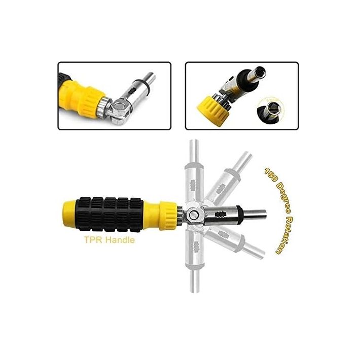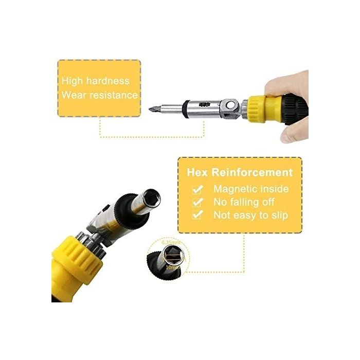 مجموعة مفكات متعددة الاستخدامات مناسبة للاستخدام في المنزل والمكتب والكمبيوتر والسيارة. تتضمن قطعًا عالية الجودة يمكن استخدامها في مهام الفكو الاصلاح. مع مقبض قابل للتعديل يسمح بالانحناء بزوايا مختلفة