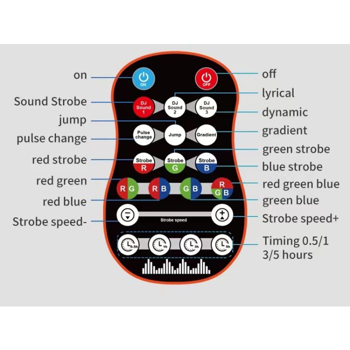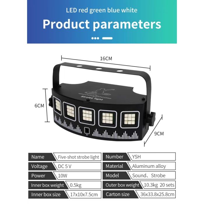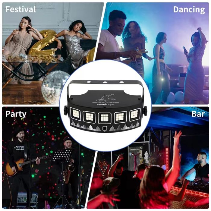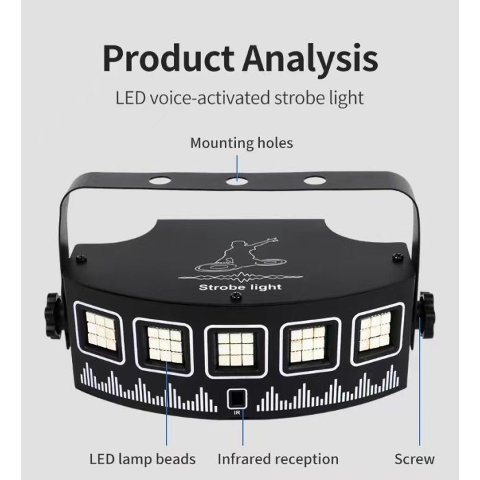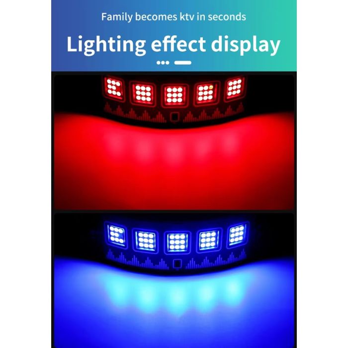 إضاءة فلاش LED متوافقة مع الأنظمة الصوتية، سهلة الاستخدام حيث تتبع الإضاءة الإيقاع الصوتي بمجرد توصيل مصدر الطاقة في نظام الصوت. كما يمكنك ضبط الإضاءة حسب الموسيقى، كما يمكنك تعليق المصباح على الحائط بكل سهولة