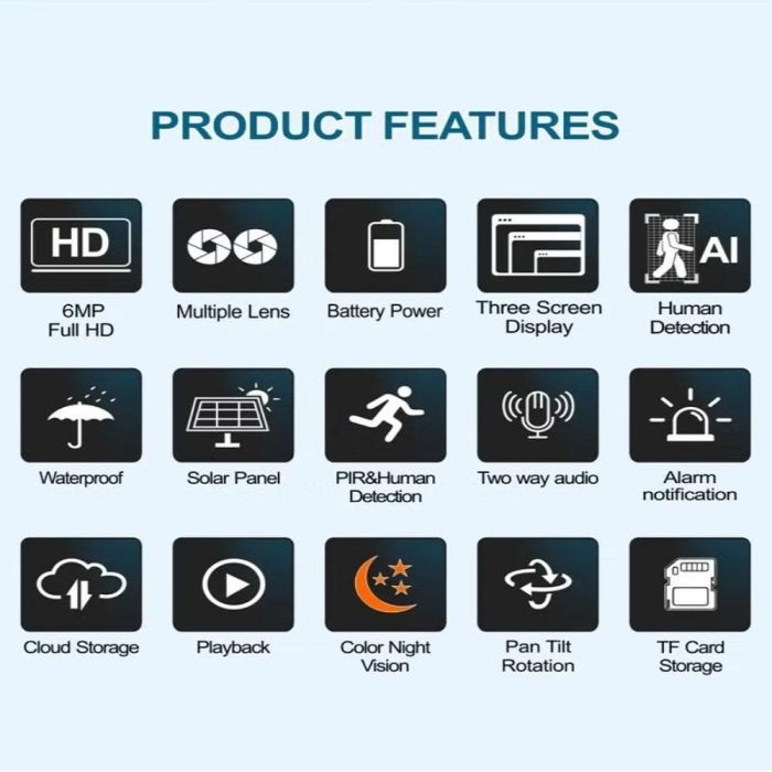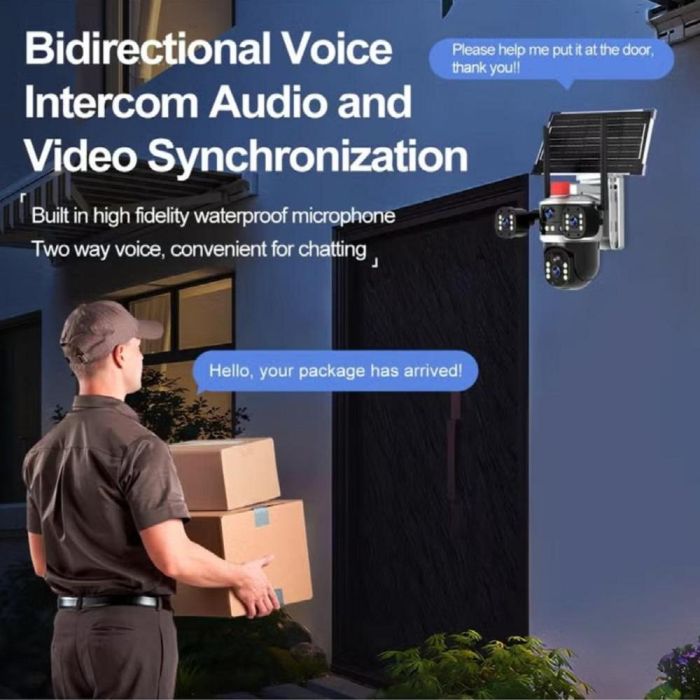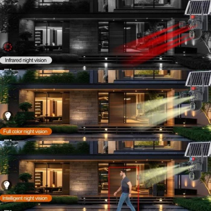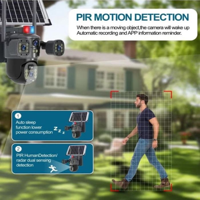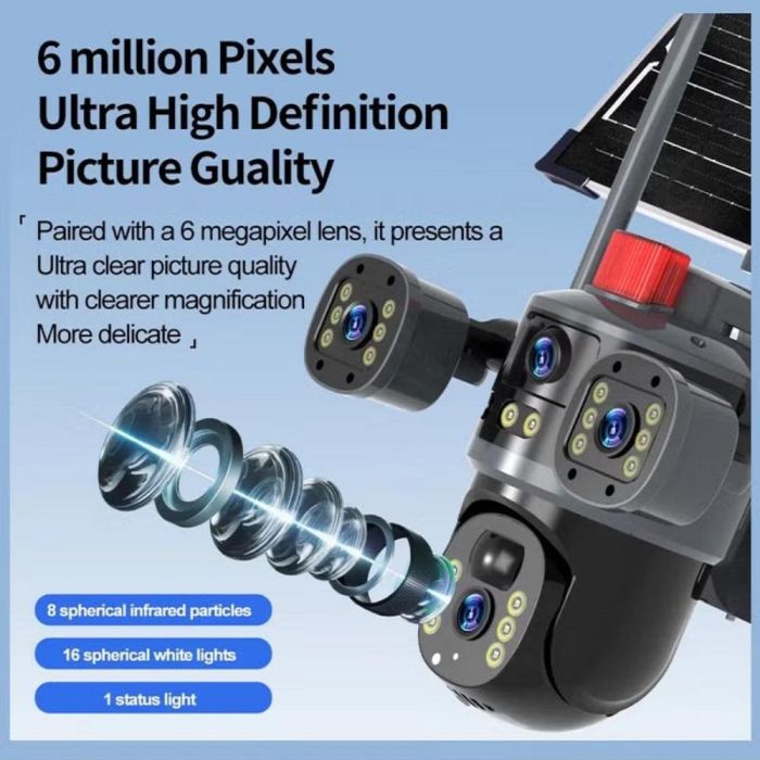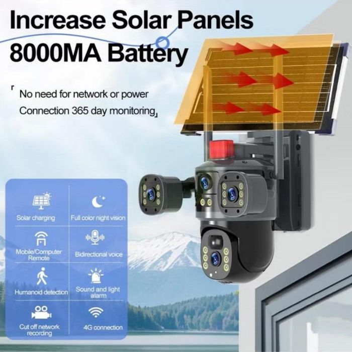 - كاميرا مراقبة ذكية بالطاقة الشمسية 4G عدسة ثلاثية 6 ميجابكسل