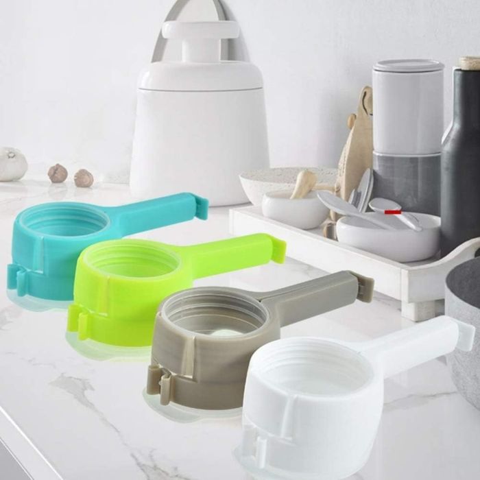 سهلة التركيب والاستخدام على أي كيس، مع غطاء علوي للصب وإعادة الإغلاق بسرعة. مناسبة للوجبات الخفيفة، المكسرات، القهوة والشوفان، لتسهيل تخزين الطعام أثناء السفر أو في المنزل.