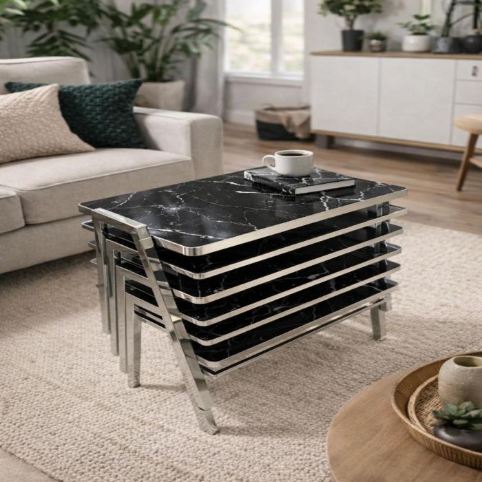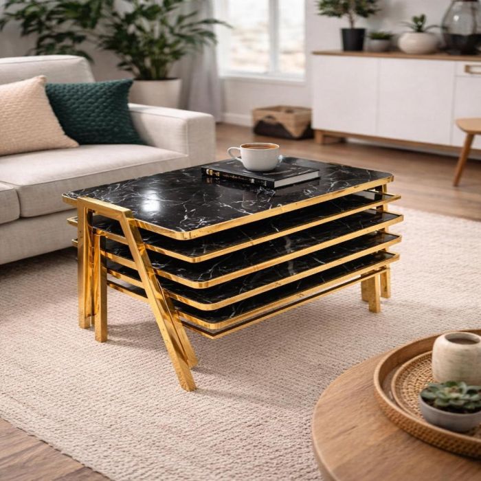 طقم أنيق من 4 طاولات قهوة متداخلة بتصميم عصري، سطح لامع وإطار معدني متين، مثالي لتوفير المساحة وإضافة لمسة فاخرة لمنزلك.