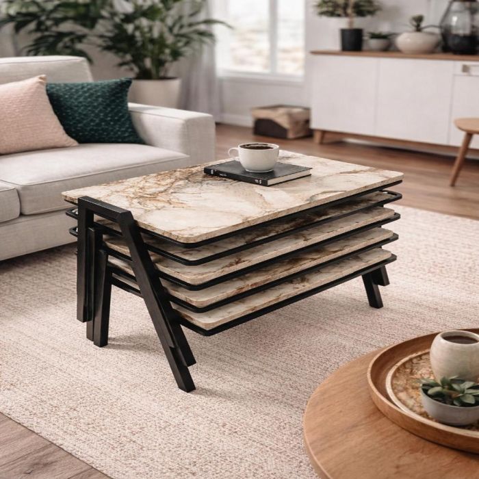 - طقم طاولات قهوة تركية متداخلة مع أرجل معدنية 4 قطع