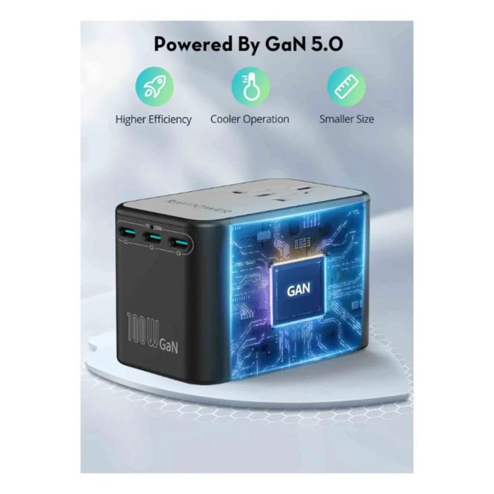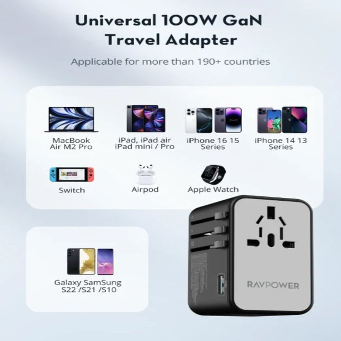 - محول طاقة عالمي 5 في 1 بتقنية GaN بقوة 100 واط من RAVPower