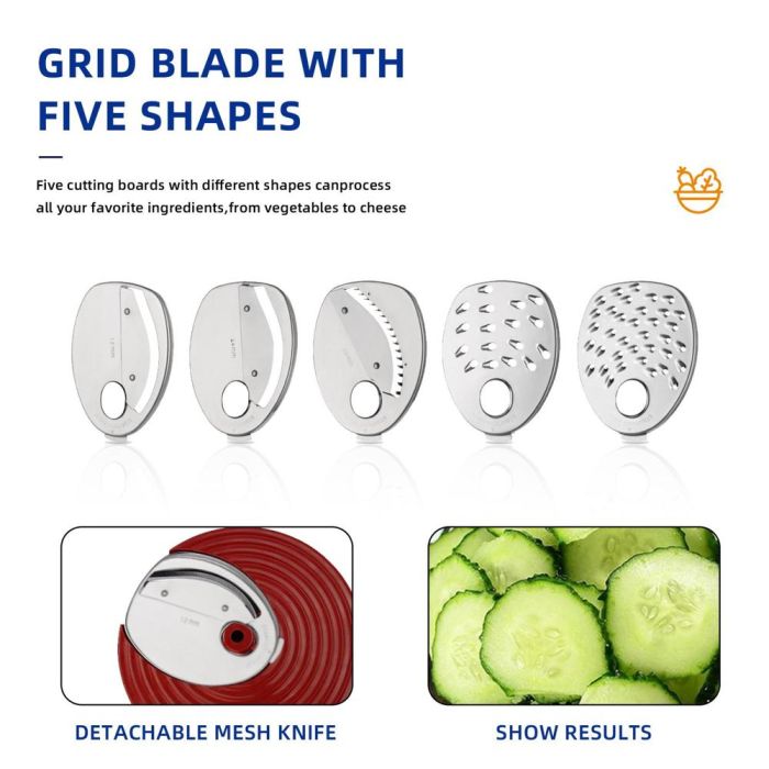 - ماكينة تقطيع كهربائية 5 في 1 للخضروات والفواكه والجبن