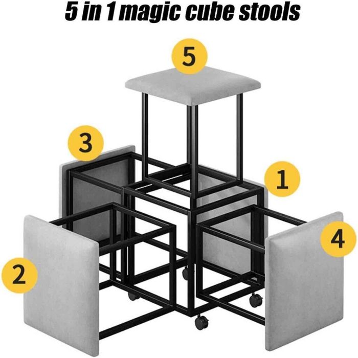 - تصميم فريد 5 في 1: يمكن وضع جميع المقاعد داخل المكعب الرئيسي لتوفير المساحة عند عدم الاستخدام