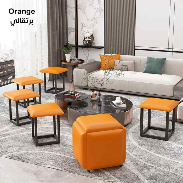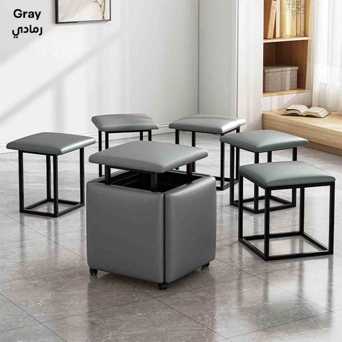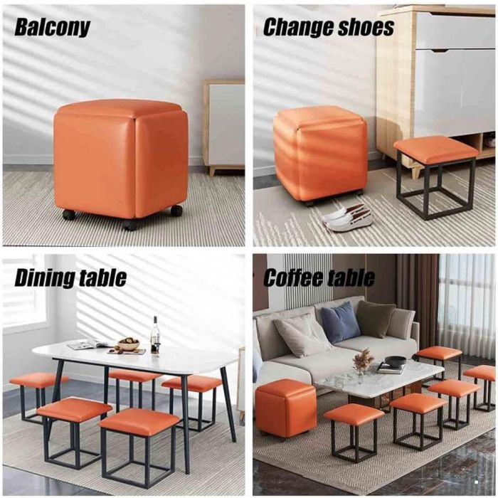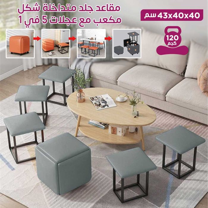 - مقاعد جلد متداخلة شكل مكعب مع عجلات 5 في 1