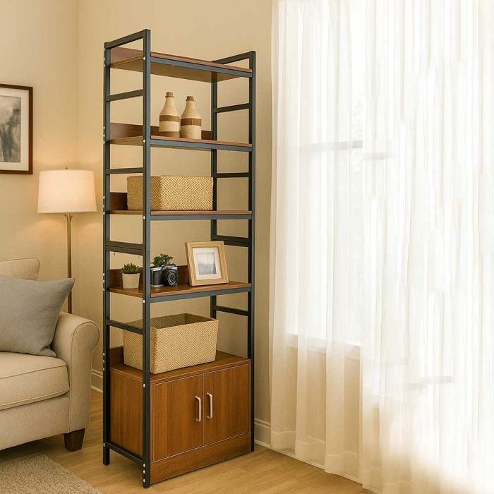 - خمسة أرفف واسعة - مثالية للكتب، الملفات، التحف، أو تخزين المطبخ.