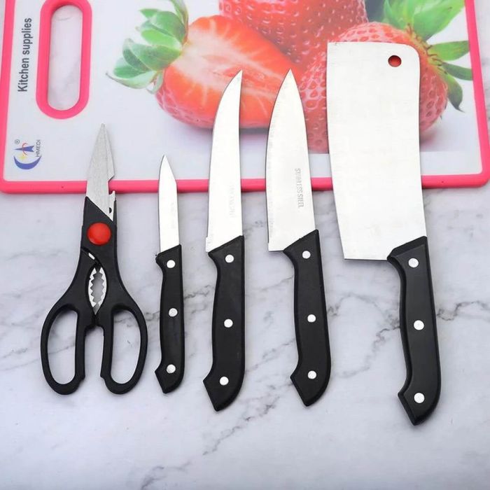 قم بترقية مطبخك مع مجموعة السكاكين المكونة من 5 قطع مع لوح التقطيع، التي تتميز بشفرات حادة من الفولاذ المقاوم للصدأ ومقابض مريحة توفر دقة وراحة في القطع. يوفر لوح التقطيع البلاستيكي المتين سطحًا صحيًا وآمنًا لاحتياجات تحضير الطعام.