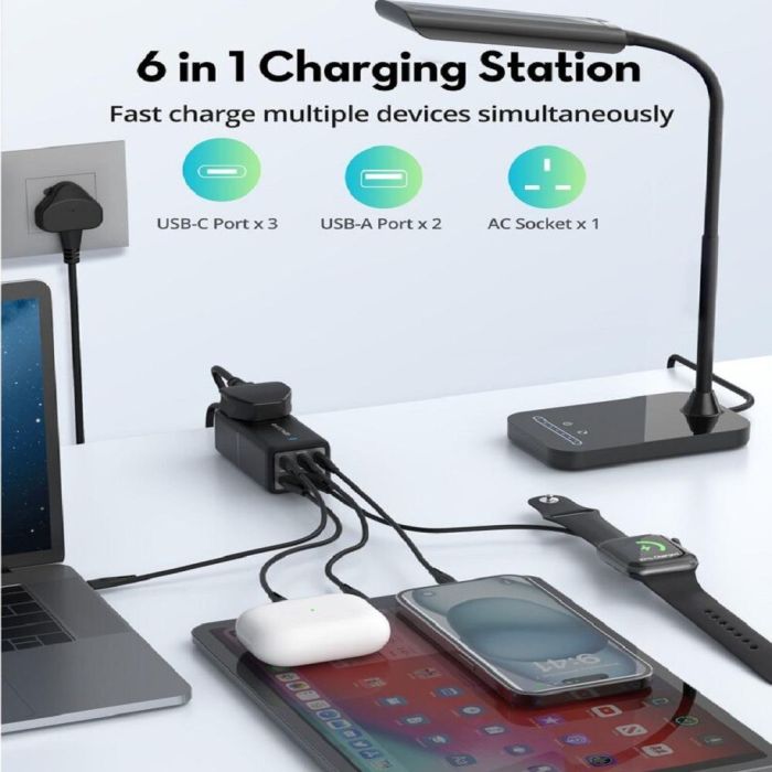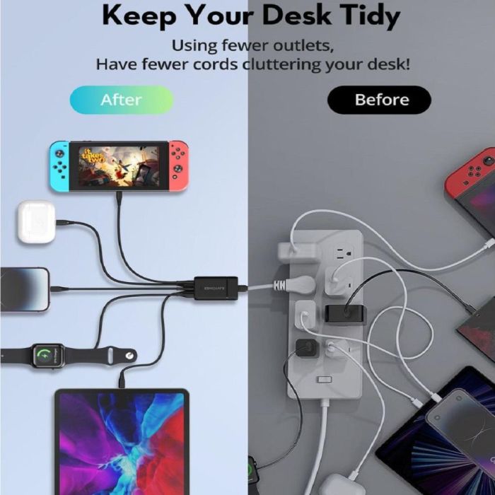 حافظ على تدفق الطاقة لأجهزتك مع هذا الحل الأنيق والعصري، يتميز بحماية متقدمة ضد الحرارة والجهد الزائد، مما يجعله خيارًا مثاليًا للمكتب أو السفر. يتيح الكيبل 1.5 متر راحة أكبر في الاستخدام مع منفذ تيار متردد لتوصيل المزيد من الأجهزة، رفيق السفر المثالي لشحن سريع وذكي بلا حدود
