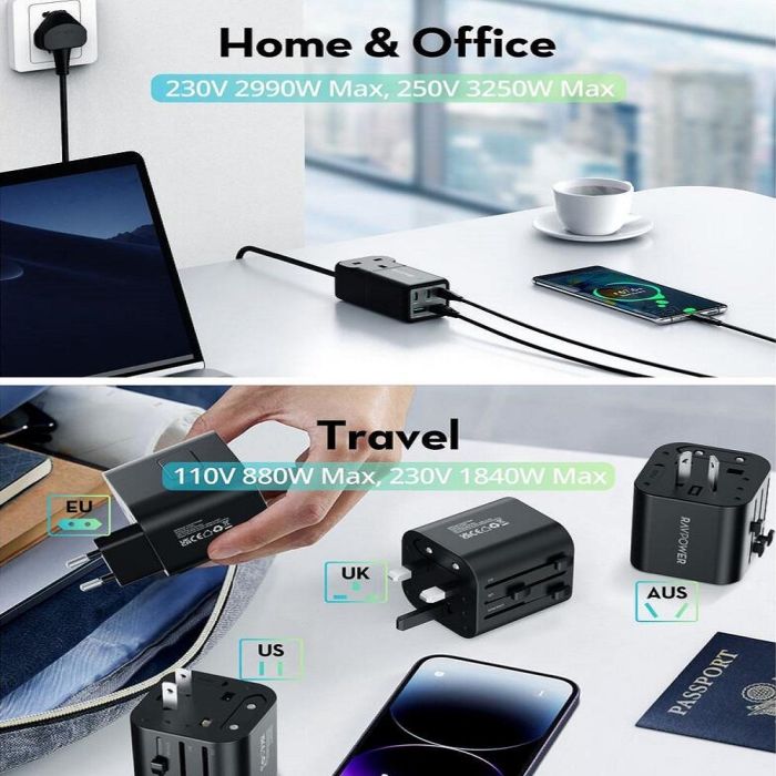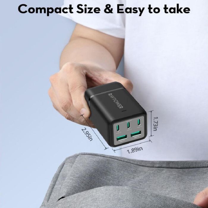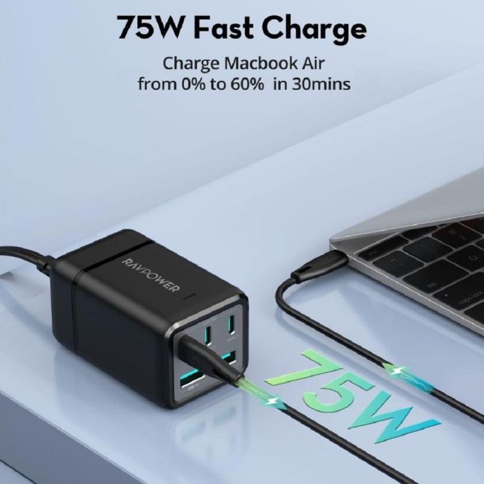 - إشتراك كهرباء 5 منافذ 75 واط بتقنية GaN + شاحن سفر من Ravpower