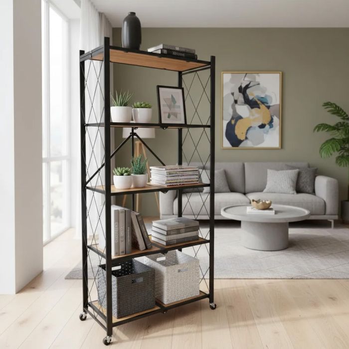 الحل الأمثل لتخزين وعرض مقتنياتك. بفضل تصميمه الأنيق ومساحته الواسعة، يمنحك المرونة لترتيب الكتب، النباتات، وصناديق التخزين في أي غرفة. والأفضل من ذلك، يمكنك طيه وفكه في ثواني دون الحاجة لأي أدوات، بينما تضمن العجلات السهلة نقله إلى أي مكان يحتاج إلى ترتيب إضافي