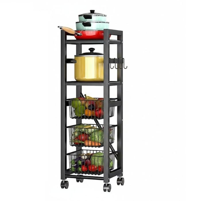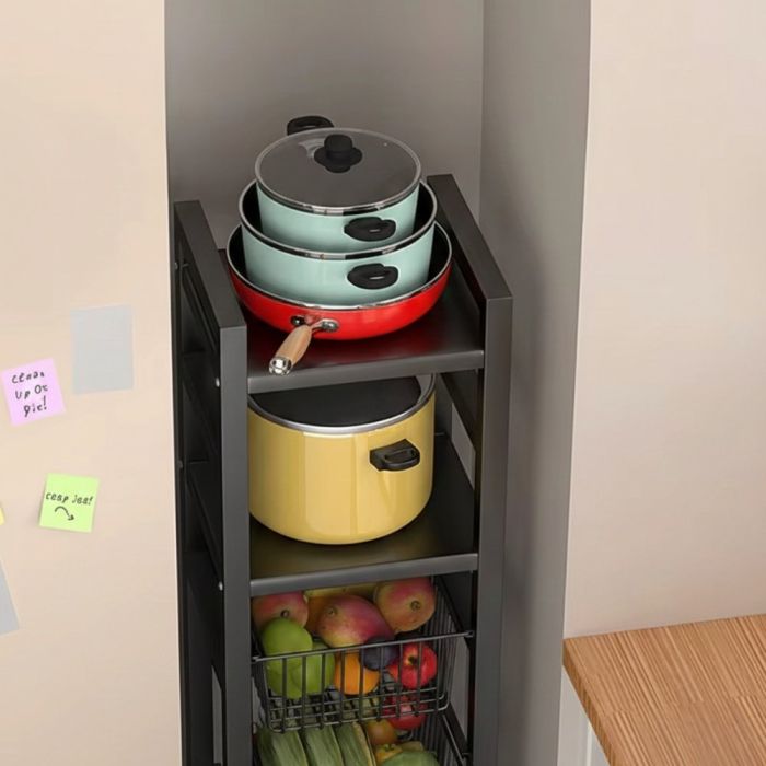 أضف لمسة من التنظيم العصري إلى منزلك مع هذا المنظم المعدني المتين. صُمم بذكاء ليوفر لك مساحات تخزين واسعة لأجهزتك وأدواتك المنزلية بكل ثبات، مع سلال شبكية قابلة للسحب تضمن تهوية مثالية. بفضل عجلاته السلسة، يمكنك تحريكه وتغيير مكانه بمنتهى السهولة، مما يجعله الخيار المثالي لتحويل أي ركن في المطبخ أو المنزل إلى مساحة مرتبة وأنيقة.