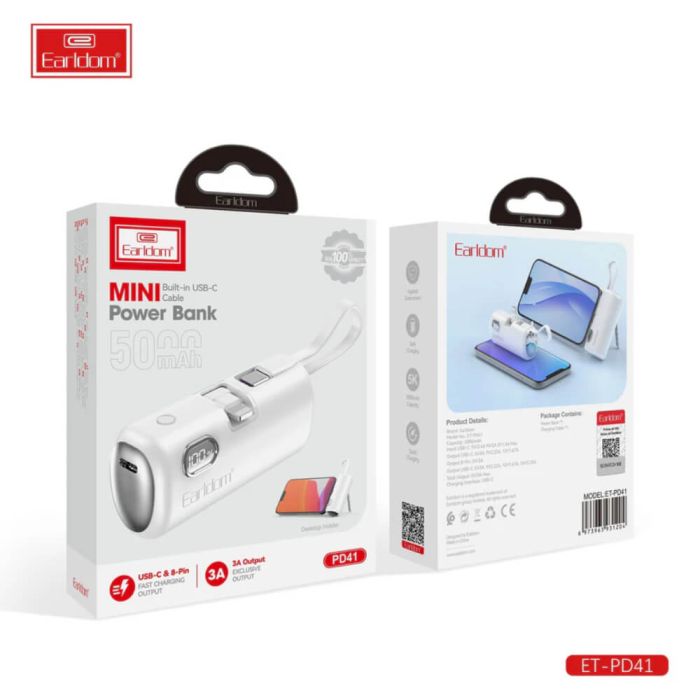 توفر سعتها البالغة 5000 مل أمبير طاقة كافية لإعادة شحن معظم الهواتف الذكية، كما يستخدم كيبل Type-C المدمج للشحن أو حبل للتعليق، مما يضمن لك البقاء على اتصال أثناء التنقل، وعلى الرغم من صغر حجم البطارية، فهي تتميز بسعة شحن كبيرة للشحن السريع، كما تتيح لك مشاهدة المحتوى دون قلق من نفاذ شحن هاتفك
