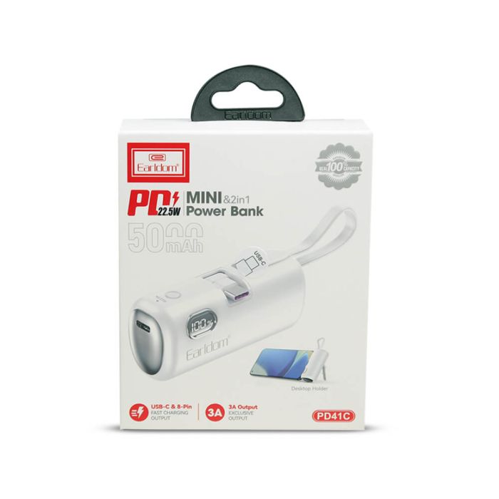 صفقة اليوم هي بطارية احتياطية للجيب شحن PD سريع 22.5 واط 5000 مل أمبير (أجهزة Type-C أو Lightning) مع كيبل Type-C من Earldom