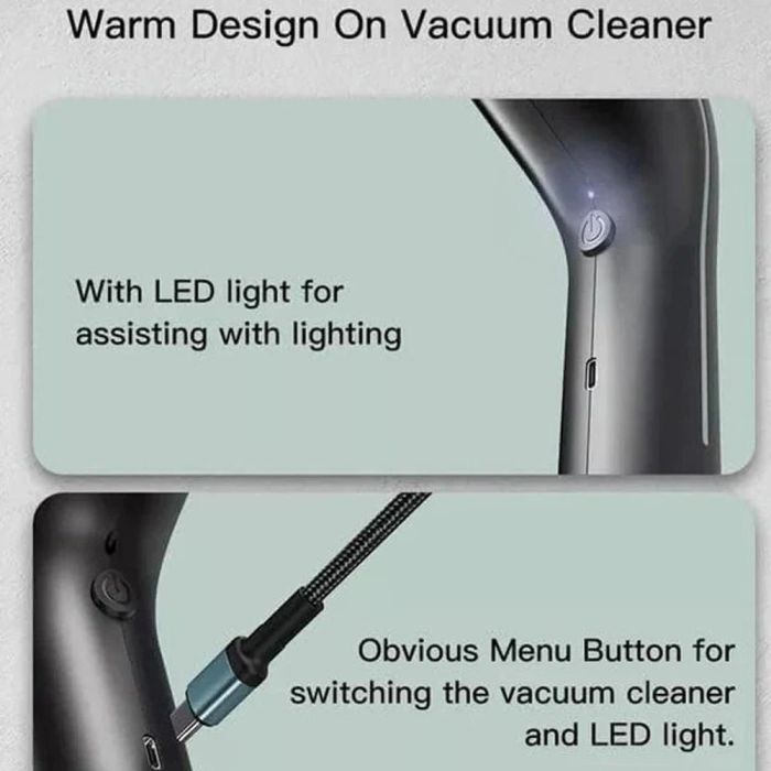 نظّف كل مكان بسهولة مع المكنسة اللاسلكية المحمولة من Yesido، المزودة ببطارية قوية بسعة 5000 مللي أمبير وقوة شفط عالية بقدرة 65 واط. خفيفة الوزن وسهلة الحمل، تتيح لك تنظيف السيارة أو المنزل بكفاءة وسرعة أينما كنت.